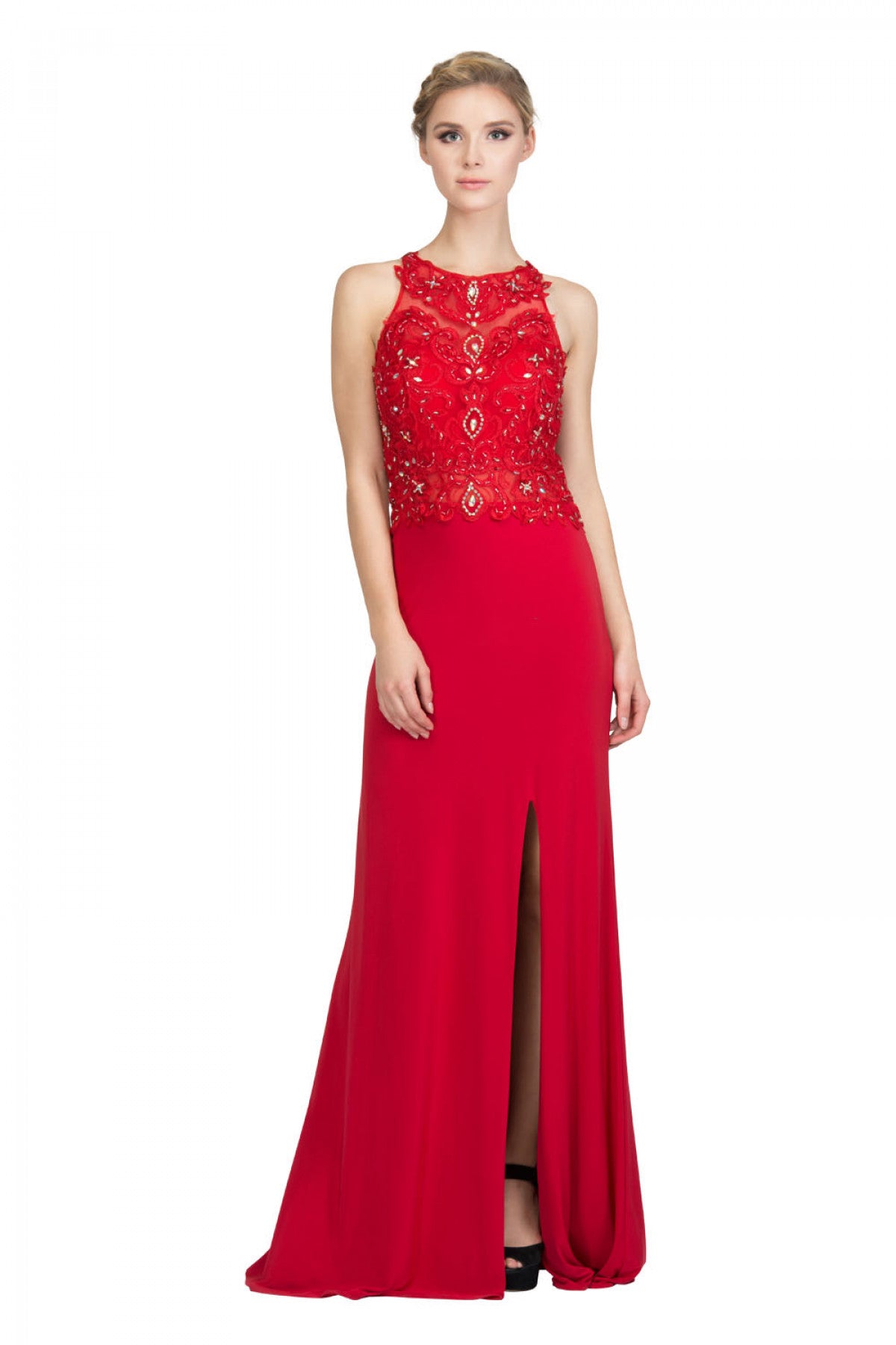 EMBELISHED LACE TOP EVENING DRESS - CLEARANCE